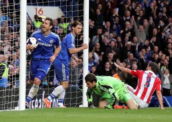 En la segunda mitad, Huges buscó modificar el panorama en el que se hallaba su equipo. Dio entrada a Charlie Adam y a Wilkinson. Los 'potters' querían hacer un uso exitoso de su contragolpe y velocidad para coger desprevenidas las espaldas de Matic y Lampard, pero los de Mourinho, excelentes en lo táctico y en lo defensivo, hiceron que eso no ocurriese. En el 59', Hazard, que entró por Schurrle, sacó de provecho un penalti para los suyos. Frank Lampard lo falló, pero supo aprovechar el rechace y no faltó a su cita con el gol.